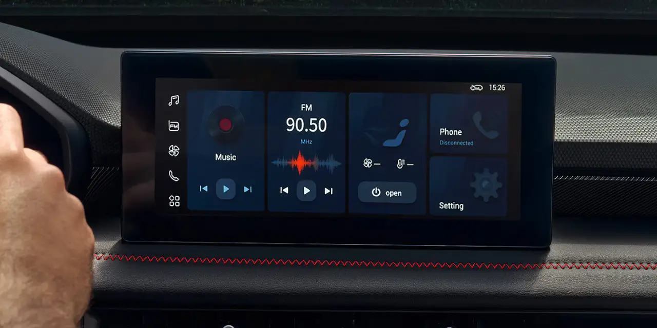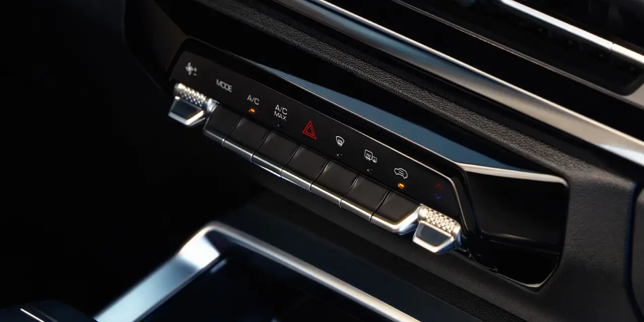 Mantén siempre la temperatura ideal en la cabina con su aire acondicionado digital. Además, cuenta con un tablero de instrumentos con acabado soft touch premium y costuras en rojo.