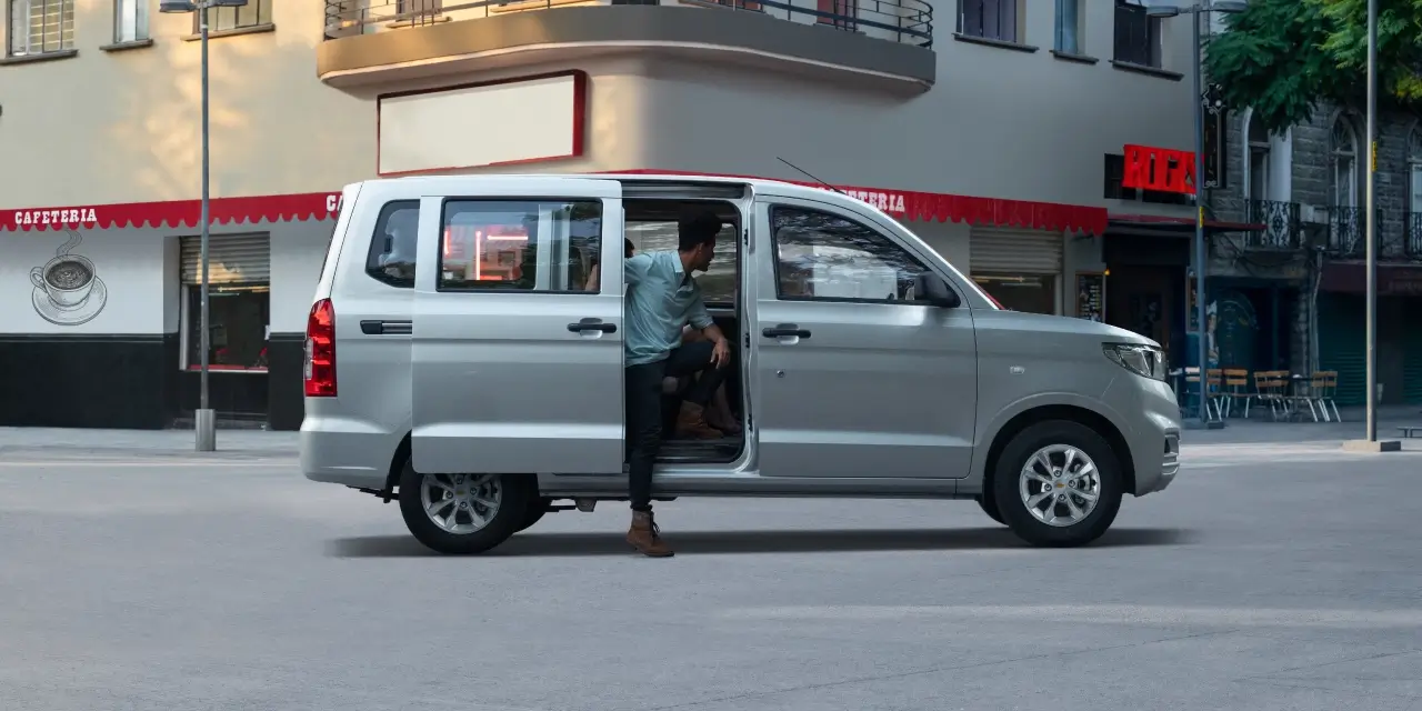 Las puertas laterales deslizantes de la Chevrolet N400 pasajeros permitenun acceso fácil y seguro por ambos lados, facilitando la entrada y salida de los ocupantes.